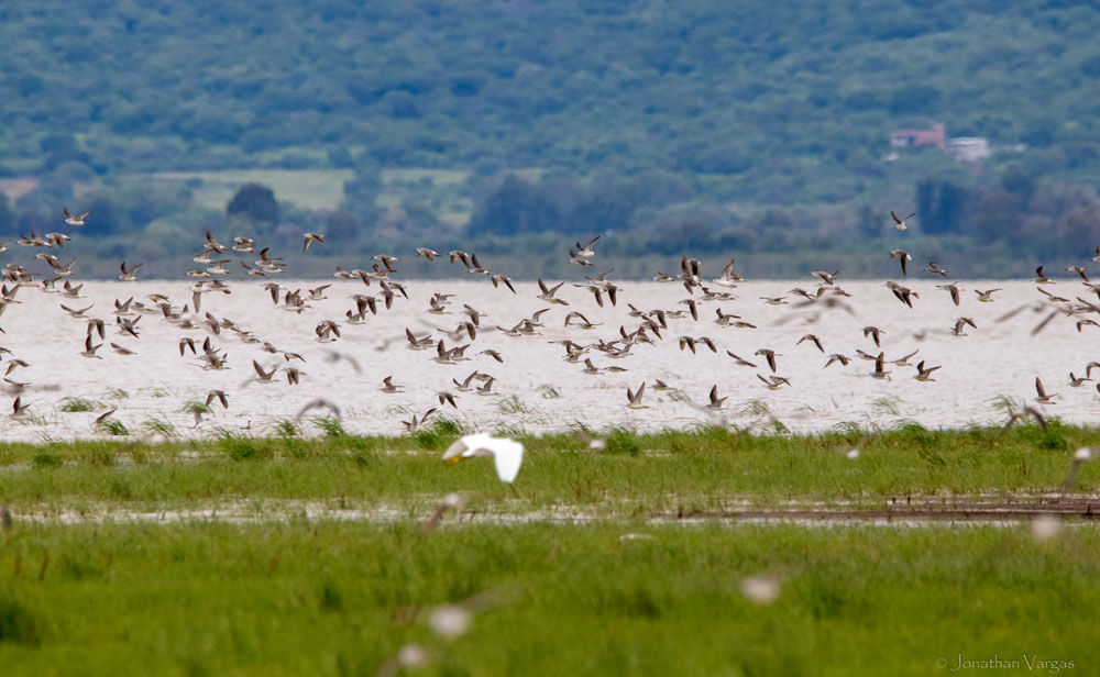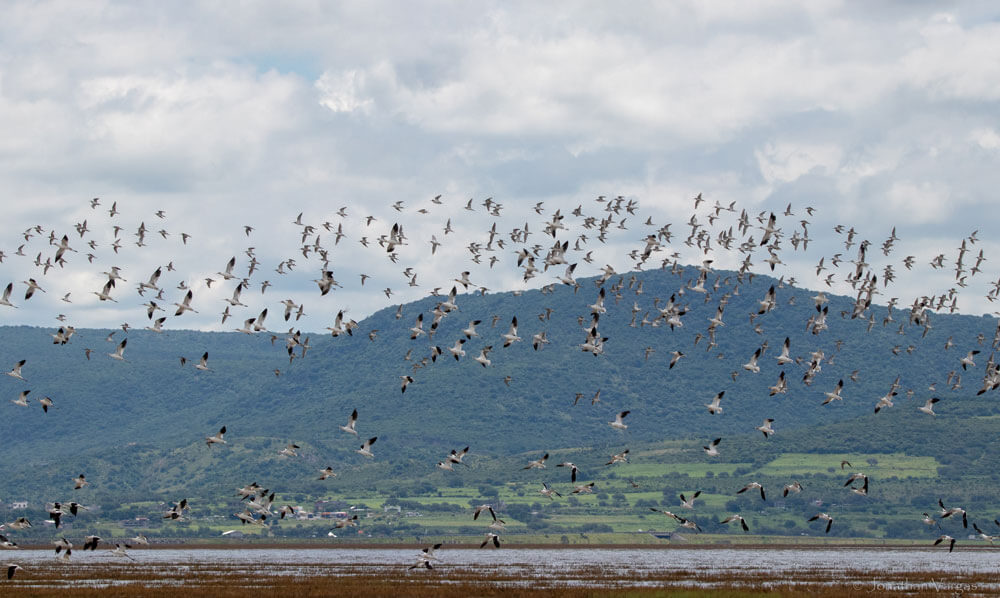 Lake Cuitzeo hosts significant populations of migratory shorebirds such as Baird’s Sandpiper (Calidris bairdii), Stilt Sandpiper (Calidris himantopus), and Wilson’s Phalarope (Phalaropus tricolor), as well as breeding species like the American Avocet (Recurvirostra americana), Black-necked Stilt (Himantopus mexicanus), Killdeer (Charadrius vociferus), and Snowy Plover (Anarhynchus nivosus). During peak seasons, the lake supports up to 135,000 waterbirds, including 20 species listed under Mexico’s NOM-059-2010 risk categories, among them the Black-capped Vireo (Vireo atricapilla) and the Lerma Rail (Rallus tenuirostris).